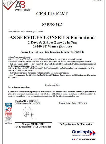A2SC FORMATIONS a obtenu sa certification le 25 novembre2020.